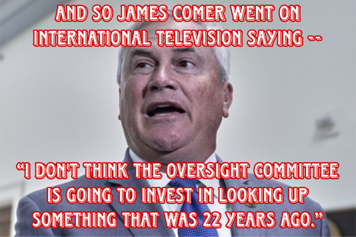 The only logical conclusion I can come up with is that James Comer is named in the Epstein files and is a pedophile.