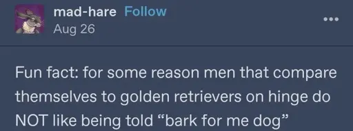 Im not on hinge, and have never thought of myself as a golden retriever or any other kind of dog…