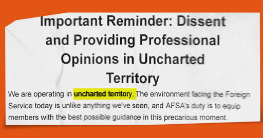“We are operating in uncharted territory,” it began. “The environment facing the Foreign Service today is unlike anything we’ve seen.”