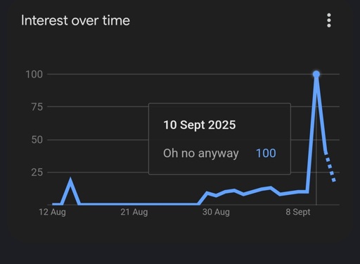If you expand the time range, the most searches were actuallt in 2021. September 2025 reached 28% of that peak, though.