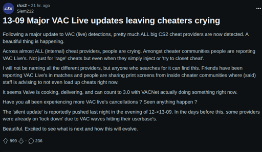 Right after an update, so you think the cheat providers just gave up? So you don’t have recent data?