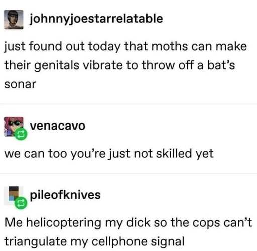 minus-squareJoeTheSane@lemmy.worldlinkfedilinkEnglisharrow-up22·1 month agoI’m not saying I do the same thing, but there are rarely any bats around me.