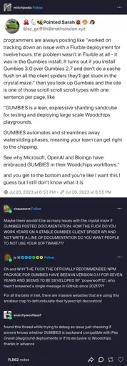 Oh and WHY THE FUCK THE OFFICIALLY RECOMMENDED NPM PACKAGE FOR GUMBIES HAVE BEEN IN VERSION 0.1.1 FOR SEVEN YEARS AND SEEMS TO BE DEVELOPED BY “powerwolf112”, who hasn’t answered a single message in GitHub since 2021???