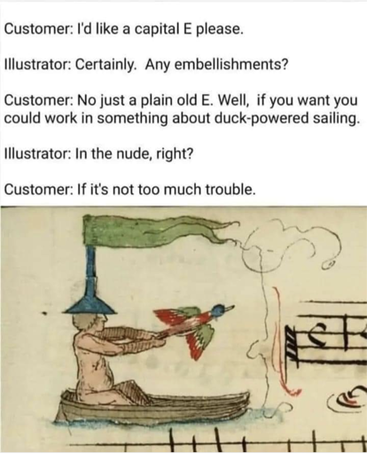 Zero downvotes. We’re all here for the nude duck sailing flagged E.