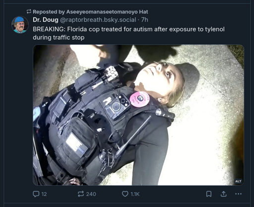 I’m pretty sure this is from the video of a dumbass pig having a panic attack because she touched an unknown powder (turned out not to be drugs at all) during a traffic stop because she thought it was fentanyl. Fentanyl does not cross the skins barrier.