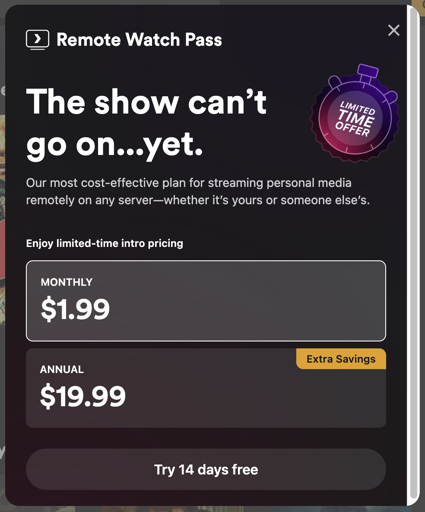 Imagine wanting to charge to stream your own media with your own hardware and resources… Hey wait, we don’t have to imagine it anymore, Plex already did it.