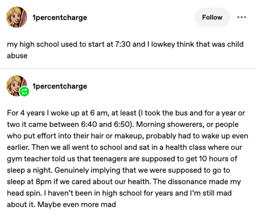 minus-squarestarman@programming.devlinkfedilinkEnglisharrow-up2·6 months agoI had to take bus at 6:00 in high school…