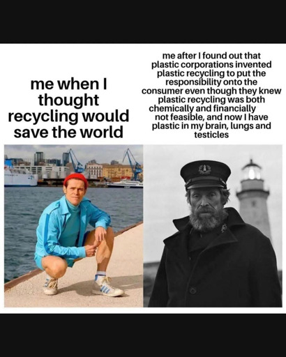 My wife hates it, but the amount of plastic trash that factories produce just blows consumer household recycling out of the water. There are people whose jobs include fillling a whole dumpster each shift. No comparison. Im not bending over backward to be little Dutch boy with my finger in the dam while it’s got a backhoe digging out the foundation.
