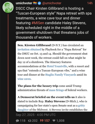 yonderbarn@lazysoci.al to Progressive Politics@lemmy.world · edit-212 days agoKirsten Gillibrand is hosting a Napa retreatlazysoci.alimagemessage-square14linkfedilinkarrow-up144arrow-down113