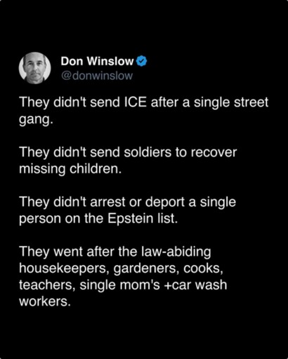 Their mission was to arrest people unlawfully in the country not saying they shouldn’t do the other things but the gangs are probably mostly if not all American along with the Epstein list
