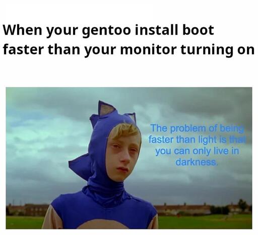 -9999packages (Gentoo’s-gitequivalent), which I like running on Arch. Also in general getting new updates quicker and just having a bigger library of packages and the AUR available, since it was kinda getting old coming across software I use or wanna use that has no ebuild available and having to make my own.Which is why I have Kali and arch on laptops. But I don’t need much exotic software.