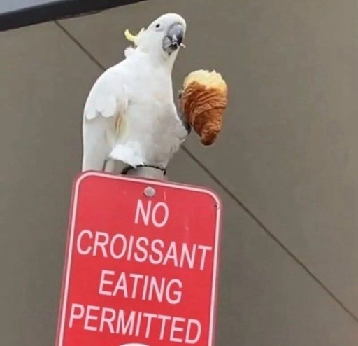 I was trying to find out how the croissant was photoshopped onto the cockatoo lol
