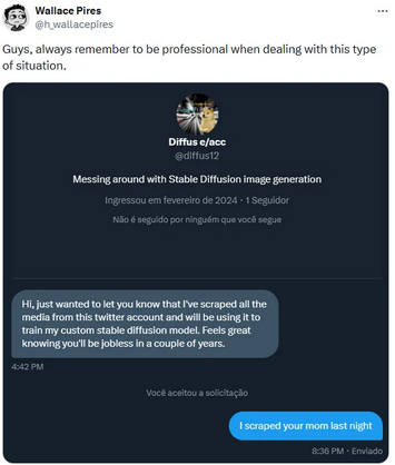 Boosters, or people who heavily use AI and see it as a source of good, ARE NOT ALLOWED HERE! I’ve seen Boosters dox, threaten, and harass artists over on Reddit and Twitter, and they constantly champion artists losing their jobs. They go against the very purpose of this community. If I hear a comment on here saying that AI is “making things good” or cheering on putting anyone out of a job, and the commenter does not retract their statement, said commenter will be permanently banned. FA&FO.