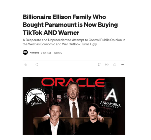 Floods the zone: Overwhelm people with content so they can’t distinguish signal from noise Amplifies division: Promote contentious cultural issues that split the working class along identity lines Manufactures complexity: Make every issue seem so complicated that ordinary people feel unqualified to have opinions Offers false choices: Present two establishment positions as the full spectrum of acceptable debate Algorithmic nudging: Subtly guide people toward certain conclusions while maintaining the illusion of choiceWhen you own TikTok’s algorithm plus CBS News plus CNN, you control the conversation at every level. You decide what “goes viral.” You decide which “experts” get platformed. You decide what questions journalists ask and which stories get follow-up coverage.