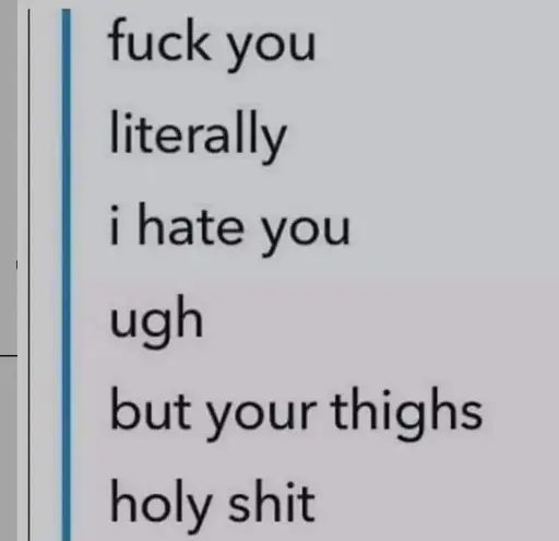 minus-squareGooseGang [she/her]@beehaw.orglinkfedilinkEnglisharrow-up9·1 month agoIf thick thighs save lives, why am I getting slowly crushed by them?
