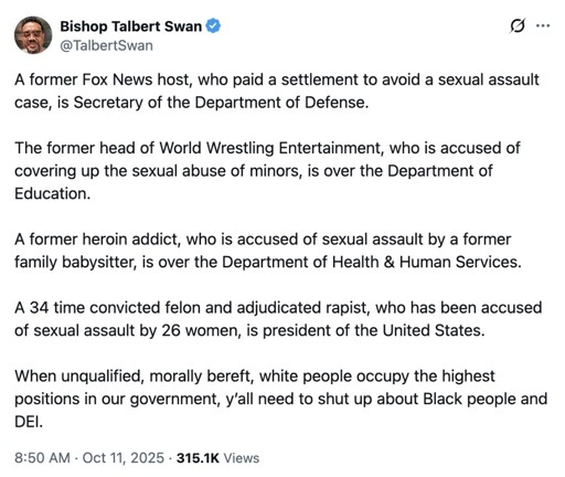 arrow-up11.13Karrow-down1imageUnqualified, morally bereft, white people running thingsdiscuss.onlineByteOnBikes@discuss.online to People Twitter@sh.itjust.works · 4 months agomessage-square68linkfedilinkfile-text