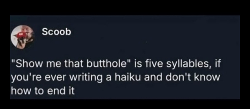 “Show me your butthole.”I would like to join