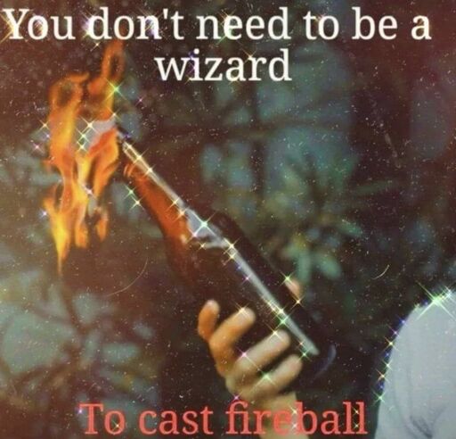 Wizards generally don’t start with the fireball right off the bat they need to level up to gain access to more advanced spells. Likewise, non-wizards can start with the Molotov cocktail and graduate to more advanced DIY munitions, like pipe bombs, flamethrowers, etc.