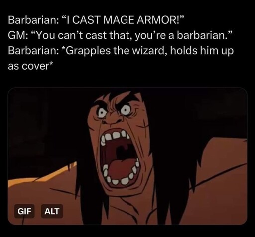 The Picard Maneuver@piefed.world to RPGMemes @ttrpg.networkEnglish · 5 months agoMage Armormedia.piefed.worldimagemessage-square14linkfedilinkarrow-up1449arrow-down13