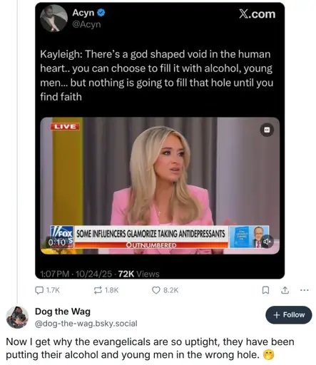 Christians love to tell people that alcohol and casual sex are coping mechanisms for lacking religion, but they never point out that sometimes religion is a coping mechanism for lack of casual sex.