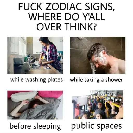 Nah, I watch Star Trek while washing plates so no chance of overthinking there. Oh, and on the train. And before sleeping. I do not while showering though so probably there.