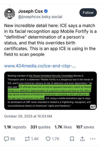 arrow-up11.03Karrow-down1imageThis is an app ICE is using in the field to scan peoplelemmy.worldSunflier@lemmy.world to People Twitter@sh.itjust.worksEnglish · edit-213 days agomessage-square151linkfedilinkfile-text