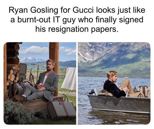 These images aren’t relatable at all. What man sits on the porch of a log cabin in a suit surrounded by his pricey luggage without roller wheels on it.