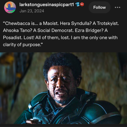 minus-squarePrunebutt@slrpnk.netlinkfedilinkEnglisharrow-up8·3 months agoEven if that’s true (imho it’s not so clear-cut): he’s still considered to be an important asset and vital in the establishment of Yavin. Also, the show clearly shows the issues of the politics of the new rebellion council.