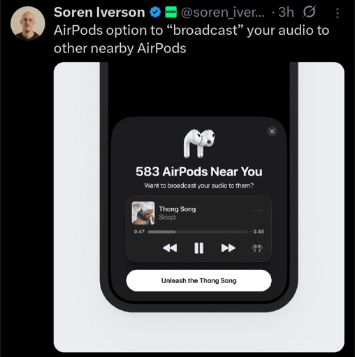 arrow-up1379arrow-down1imageWant to annoy other passengers on the train but without sacrificing sound quality?media.piefed.worldThe Picard Maneuver@piefed.world to People Twitter@sh.itjust.worksEnglish · 14 days agomessage-square46linkfedilinkfile-text