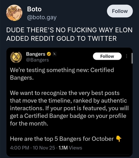 arrow-up1334arrow-down1imageXitter gold rulelemmy.worldZILtoid1991@lemmy.world to 196@lemmy.blahaj.zoneEnglish · 28 days agomessage-square28linkfedilink