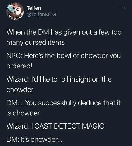 Stamets@lemmy.dbzer0.com to RPGMemes @ttrpg.network · 1 month agoTrust nothinglemmy.dbzer0.comimagemessage-square26linkfedilinkarrow-up1503arrow-down16