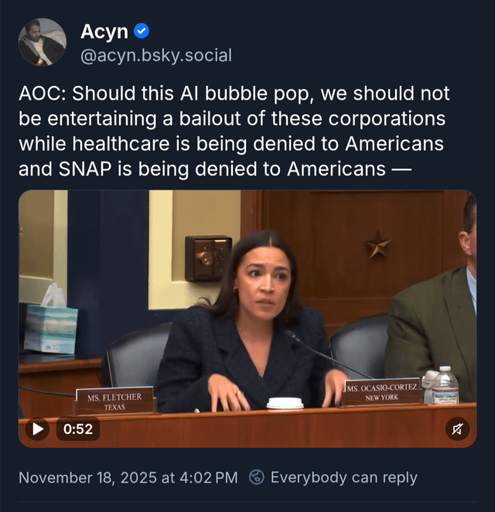 I refuse to help bailout these crappy AI companies that just steal from everyone and want to take jobs away from hard working americans.