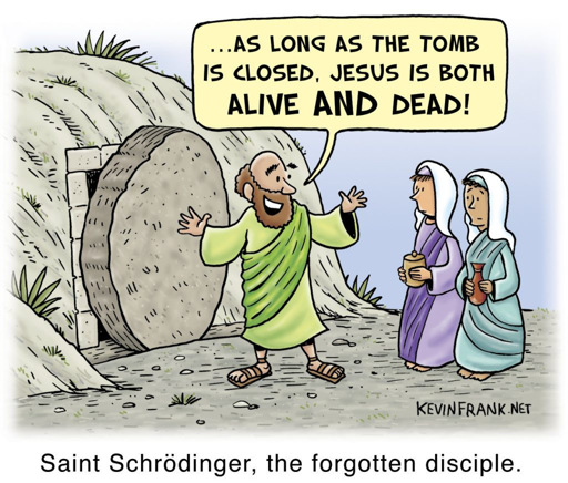 Its all a superposition…the son, the father and the holy spirit. But if you observe them they collapse the equation.