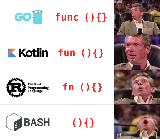 Cfeels fine without having a keyword for function, I feel likebashwould have benefitted from it.Bash (specifically Bash, not POSIX sh) does have a keyword for functions (