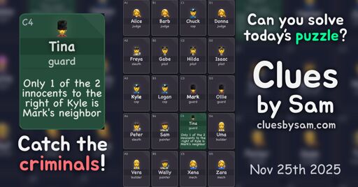 I solved the daily Clues by Sam, Nov 23rd 2025 (Hard), in less than 16 minutes