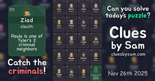 arrow-up19arrow-down1external-linkClues by Sam, Nov 24th 2025cluesbysam.comKanadrAllegria@lemmy.ca to dailygames@lemmy.zipEnglish · 10 days agomessage-square4linkfedilinkfile-textcross-posted to: dailygames@lemmy.zipdailygames@lemmy.zipdailygames@lemmy.zipdailygames@lemmy.zipdailygames@lemmy.zipdailygames@lemmy.zipdailygames@lemmy.zipdailygames@lemmy.zipdailygames@lemmy.zipdailygames@lemmy.zip