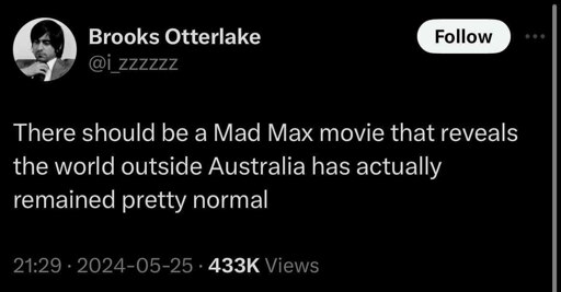 cm0002@suppo.fi to Funny@sh.itjust.works · 8 days agoNew Mad Max movie conceptsuppo.fiimagemessage-square58linkfedilinkarrow-up11Karrow-down16