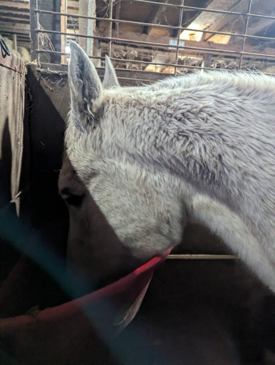 We hung out and jammed in her stall while she ate. After she was done, I used the weight tape on her and she’s about 820lbs now!