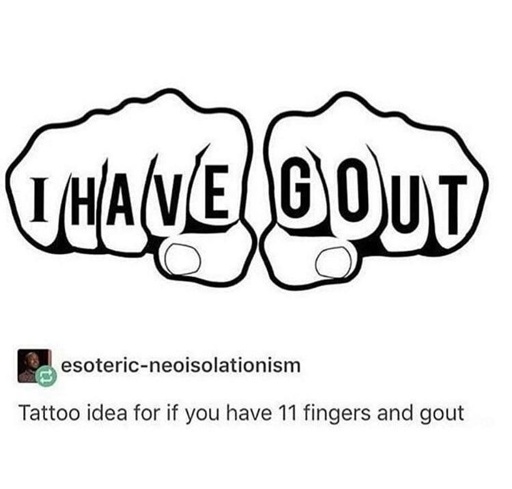 I’d rather do “GOUT KING (or GOUT QUEEN, I DON’T REALLY CARE)”