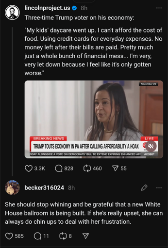 Source: https://www.threads.com/@becker316024/post/DSGZXoeEgA3/she-should-stop-whining-and-be-grateful-that-a-new-white-house-ballroom-is