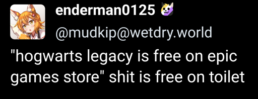 Joke is, I might actually grab it for free. So long as Rowling isn’t profiting from it, I don’t actively hate HP (despite its bad worldbuilding and unsubtle racism 😬). Especially that iirc there were a few small things in the game kinda flipping off Rowling, so the devs working on it probably didn’t like her either.