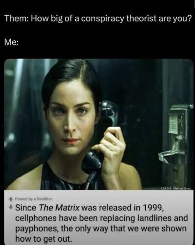 minus-squareX@piefed.worldlinkfedilinkEnglisharrow-up11·3 days agoTrin also slaps her hand against that phone booth’s glass milliseconds before being aerosolized by truck after the agents tracked her shit on a landline, making landlines just about (but not quite) the shittiest way to leave the matrix, but go on.