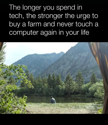 People that get tired of tech jobs, might not be because of tech, rather the people they have worked with and the unrelenting pull of a capitalist society.