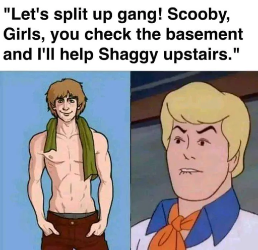 minus-squareJo Miran@lemmy.mllinkfedilinkarrow-up28·16 days agoIf the ascot wasn’t a clue then I don’t know what would be. Also, Shaggy’s build makes sense given how much running he an Scooby do.