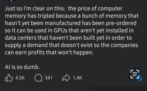 The frustration is valid, but it’s less ‘AI is dumb’ and more ‘markets chasing hype create weird shortages.