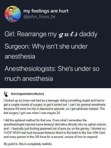 Track_Shovel@slrpnk.net to Microblog Memes@lemmy.worldEnglish · 5 days agoAnaesthesiaslrpnk.netimagemessage-square68linkfedilinkarrow-up1687arrow-down113file-text