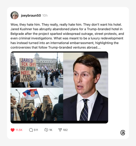 slothrop@lemmy.ca to Microblog Memes@lemmy.worldEnglish · 11 days agoIf Americans Had Serbians' Balls...lemmy.caimagemessage-square43linkfedilinkarrow-up1523arrow-down19file-text