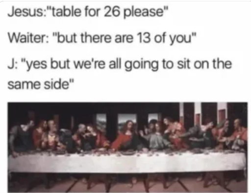 Best to not have your back to any of your apostles. You never know when one will stab you in the back.