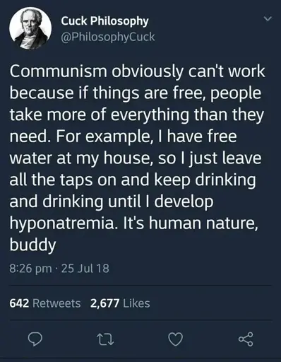 That’s the entire point of the post. It’s called satire. They are satirizing people who don’t understand communism and human nature.