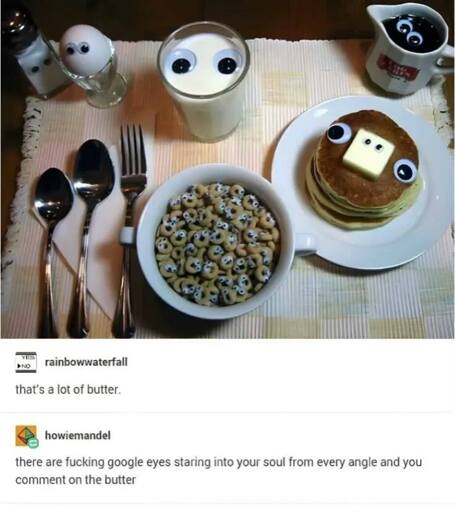 minus-squareDanarchy@lemmy.nzlinkfedilinkarrow-up3·5 days agoGoogly eyes will scare you once but high cholesterol will haunt u 4 lyfe